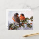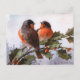 Una bonita postal de invierno con dos ropas encaramadas en la rama de un matorral, pintada por la artista alemana Catherine Klein.
