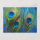 Esta fotografía azul de plumas de pavo real fue tomada con una lente de ojo de pez. Estas tres plumas tienen un hermoso color y hacen una gran idea de regalo. El fondo azul resalta los colores de los ojos de plumas de pavo real.