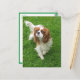 ¡Brilla el día de alguien con un cachorro de Rey Carlos! Esta divertida postal canina muestra una imagen de un cachorro Cavalier King Charles Spaniel caminando por la hierba verde.