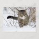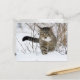 Un gatito de Mackerel, de ojos amarillos, caminando en la nieve.