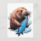 Gráfico de fondo transparente león marino morsa pescando en el océano