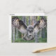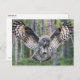 Tarjeta animal que muestra un búho gris de caza. El gran búho gris o búho gris (Strix nebulosa) es un búho muy grande, documentado como la especie de búho más grande del mundo por longitud. Se distribuye por todo el hemisferio norte. Los adultos tienen una cabeza grande, redondeada, con una cara gris y ojos amarillos con círculos más oscuros a su alrededor. Las partes inferiores son luminosas y están recubiertas de ramas oscuras; las partes superiores son grises con barras claras. Esta lechuza no tiene traseros de oreja y tiene el disco facial más grande de cualquier rapero.