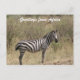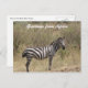 Postal de saludos de África que presenta cebra solitaria en estado salvaje en Kenia - redacción completamente de personalizable.
