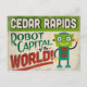 Una graciosa postal de viaje de Cedar Rapids Iowa vintage presentando un simpático robot con divertido texto de estilo retro que dice, "¡Cedar Rapids, Robot Capital del mundo!"
