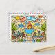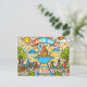 Celebre el Día del Trabajo con esta vibrante carta que incluye una animada barbacoa al aire libre. En el centro, una gran parrilla azul con llamas danzantes y el atrevido texto "DÍA DEL TRABAJO" sirve de punto central. Alrededor de la parrilla, se representa a la gente disfrutando de la compañía de los demás, sentados en mantas de picnic y participando en conversaciones. El fondo está adornado con rayos solares, nubes y estrellas, lo que añade a la atmósfera festiva de esta fiesta especial que honra las contribuciones de los trabajadores.