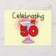 Camisetas de cumpleaños 50, camisetas de tanques, caramelos, tazas, tarjetas, pegatinas, imanes, botones de cumpleaños 50, cadenas de claves y otras prendas de cumpleaños 50 con un colorido diseño de cócteles Celebrate 50.