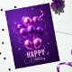 Celebre con estilo con esta vibrante y festiva tarjeta postal de cumpleaños personalizable. El diseño presenta una impresionante variedad de globos morados y rosados, algunos con elegantes rayas, flotando contra un fondo morado intenso. Los globos están rodeados de confeti juguetón y cintas onduladas, lo que añade un toque de alegría y emoción a la escena. En la parte inferior de la tarjeta postal, el mensaje alegre "FELIZ Cumpleaños" se muestra de manera prominente en una mezcla de fuentes en negrita y manuscritas, creando un efecto dinámico y llamativo. El texto es totalmente personalizable, lo que le permite agregar un toque personal y hacer que esta tarjeta postal sea verdaderamente única para su ocasión especial. Ya sea que esté enviando deseos de cumpleaños a un amigo, familiar o colega, esta tarjeta postal seguramente les hará sonreír y hará que su día sea aún