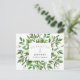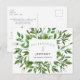 Tarjeta postal de Celebración de la Vida. Detalles en el reverso. Pérdida de un ser querido con celebración. Compartir recuerdos. Personalizar. Horizontal. Follaje. Fondo blanco.