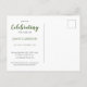Invite a amigos y familiares a compartir sus historias y recuerdos favoritos con esta elegante invitación de tarjeta postal de celebración de la vida de color verde oscuro.