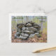 Esta postal presenta una reliquia de una cairna de piedra en Connecticut que posiblemente sea un marcador de una tumba nativa estadounidense. La historia oral dice que hubo una epidemia de viruela en esta zona y que fue un cementerio. El público necesita ser consciente de estas ruinas indígenas de Norteamérica para que puedan ser preservadas.