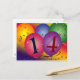 Grandes globos de colores con fondo de confeti y arcoiris con 14 en los globos. Diseño perfecto para tu fiesta de cumpleaños número 14 favores / mailings.