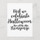 celebrar Halloween divertido diciendo cita con frase humorística como Primero celebramos Halloween Luego todas las otras tonterías. Perfect Happy Halloween del 31 de octubre por dar como regalo a padre, madre, hijo, hija, hermana, hermano, abuelos, niños, novio, novia, marido, mujer, tío, profesor, familia.