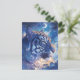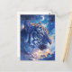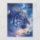 This ethereal postcard features a majestic tiger gazing into a magical night sky. The artwork is rendered in a dreamlike watercolor style, blending the tiger's iconic stripes with deep indigo clouds and shimmering gold highlights. Above the tiger, a glowing crescent moon and delicate constellations shine amidst a canopy of twinkling stars. The palette of navy blue, soft lavender, and warm amber creates a tranquil yet powerful atmosphere. This postcard is a perfect choice for sending an inspiring message, a unique birthday greeting, or as a striking piece of miniature wall art for fantasy and nature enthusiasts.
