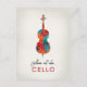 Diseño brillante y colorido de Cello que dice "Por encima de todo... Cello". Colores cálidos de rojo, naranja, turquesa y aqua en un patrón de estilo acuarela sobre un fondo neutro.