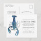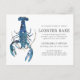 Tarjetas postales personalizadas con tema de Langosta Azul para tu próxima Cena de Langosta o evento de mariscos. Cuenta con una ilustración de estilo acuarela de una langosta azul. Alrededor de esta hay espacios para tu información de evento única.