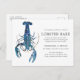 Tarjetas postales personalizadas con tema de langosta azul para tu próxima fiesta de langosta al horno o evento de mariscos. Cuenta con una ilustración de estilo acuarela de una langosta azul. Alrededor de esto hay espacios para la información de tu evento único.