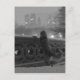 Enfoque seco de una foto de mi Golden Retriever mirando por el puente Bow en Central Park durante una tormenta de nieve. El horizonte de la ciudad de Nueva York se ve a lo lejos.