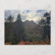 Disfrute de la belleza etérea de Chimney Tops en el Parque Nacional Great Smoky Mountains al atardecer. Maravillarse con la majestuosa majestuosidad de los picos de Chimney bajo el resplandor iridiscente otoñal de la luz solar en las nubes. Siente el poder y la presencia de la caída en los altísimos árboles de coníferas, y los arbustos de los naranjas de fuego. Observen los amarillos dorados de los baldaquinos lejanos con follaje otoñal. La tranquilidad de la escena montañosa te invade. Esta postal es la manera perfecta de conmemorar un viaje a los fumadores o de regalar a la familia o amigos que les hagan saber de qué se les piensa.