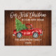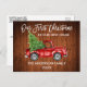Guión de pincel moderno Nuestra primera Navidad en nuestra nueva tarjeta postal de Invitación móvil de vacaciones en casa incluye un camión rojo de color de agua con árbol de Navidad - Madera rústica de campo
