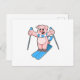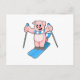 Postal Cerdo como esquiador con bufanda de esquí y baston