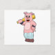 Postal Cerdo en Cricket con bate de cricket