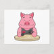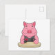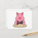 Postal Cerdo en el póquer con cartas de póquer