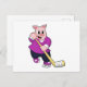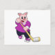 Postal Cerdo en hockey sobre hielo con palo de hockey sob