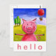 Un cerdo muy feliz, con un ratón en un globo de aire caliente en el fondo. Pintura por s t u d i o L e n a r www.studiolennart.com