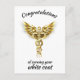 Recibir su bata blanca es un momento muy especial e importante en la vida del estudiante en su camino. ¡Esta tarjeta es totalmente personalizable con el nombre y la escuela! El símbolo médico tiene un 3el símbolo. ¡Tarjeta perfecta para enviar a alguien que ha obtenido su bata blanca!