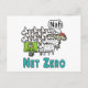 El diseño Net Zero muestra ovejas siguiendo órdenes de un ambientalista furioso. Una oveja dice "No" y elige una dirección diferente. Las palabras "Net Zero" que aparecen a continuación explican con más detalle este divertido mensaje anti net zero.