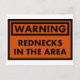 Este diseño presenta un claro signo naranja con un mensaje de advertencia para advertir a la gente sobre que los Rednecks son el área. ¡Imaginamos que la gente debería ser advertida sobre tales cosas!