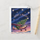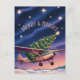 Soar into the season with this whimsical vintage style Aviation themed Christmas card! Design features a classic Cessna Skyhawk aircraft flying through a star-filled night sky, proudly hauling a fully decorated Christmas tree strapped atop its wings. Below, illuminated snowdrifts glow under rich amethyst twilight hues, while the festive greeting “Merry & Bright” shines in retro aviation lettering.
