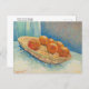 Postal de arte fino con la imagen de Basket with Six Naranjas (1888), obra post-impresionista del artista holandés Vincent van Gogh (1853-1890). Esta vida todavía representa una cesta de mimbre llena de fruta, colocada sobre una mesa.