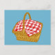 Una imagen estilizada de una canasta de picnic. Imagina la deliciosa comida que contiene esta bonita cesta de picnic con manto de raya rojo y blanco.