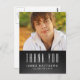 CHALKBOARD GRAD | GRADUACIÓN GRACIAS A SU TARJETA CON FOTO GRAD CON TIPOGRAFÍA DE RETRO BLANCO Y FONDO DE CHALKBOARD NEGRO PARA SU HIJO. Elke Clarke© Para MonogramGallery en Zazzle. Un diseño divertido, audaz y moderno para un adolescente que se gradúa en la secundaria o en la universidad. Otros colores y estilos disponibles en nuestra tienda.