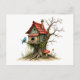 A charming change of address postcard with a blue bird and a birdhouse. All text can be changed or deleted. AI image generated by IveyCottage.