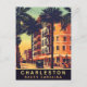 Postal de Charleston, Carolina del Sur. Palmeras en las calles de la ciudad. Tarjeta postal de viaje en colores vibrantes.