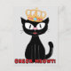 El Personalizado negro Cat Hilda el Kitten™ con corona joyada. Debajo se lee: ¡CHECK MEOWT! ¡Una postal linda y graciosa!