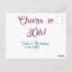 Postal Cheers to 30th birthday name date mauve blue elega