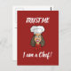Cabeza del chef con gorra, pañuelo rojo y texto personalizado.