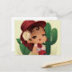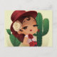 Chibi lindo chica en vestido de baile flamenco y gorra español. Con cactus en el fondo.