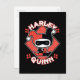 Echa un vistazo a Chibi Harley Quinn mientras hace las divisiones delante de un fondo de diamante de polka rojo con su nombre escrito a su alrededor.
