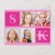 Tarjeta postal de cumpleaños rosa brillante para niña con 4 fotos. Celebre el cumpleaños de su hijo con 4 fotografías adorables de ellos en esta tarjeta postal con bonitas cuadrados rosas para agregar sus propias fotografías. Agregue su nombre y edad. Utilice como tarjetas postales de invitación de cumpleaños o un regalo de feliz cumpleaños.