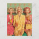 Three elegantly dressed women sit together in vibrant retro-inspired outfits, holding bright cocktails against a vintage floral backdrop. With polished hairstyles, bold colors, and poised expressions, the scene captures a stylish, timeless moment that blends classic glamour with modern confidence and a touch of playful sophistication.