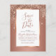 Postal Chic Rosa Dorado Brillo Gotear Guarde la Fecha
