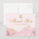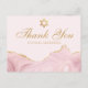 Chic rosa y oro ágata decora el lado de esta moderna tarjeta de agradecimiento de Bat Mitzvah. ¡Mazel Tov! Personalice con su nombre debajo de la Estrella de David. Tarjeta postal perfecta para una familia judía chic y elegante que celebra a una niña que es llamada a la Torá.