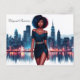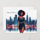 Hermosa chica afroamericana con un vestido nocturno contra el telón de fondo de la ciudad. Mujer de negocios de estilo étnico. (POR FAVOR! - Consulte también otras nuevas colecciones para obtener más opciones)