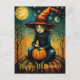Postal Chica Bruja Sentada En Una Calabaza Halloween