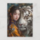 Una serena obra de arte de un joven chica sosteniendo un cubo de tigre bajo flores de cerezo, representando el signo zodiaco chino Tiger. Perfecto para colecciones culturales o de temática zodiaca.