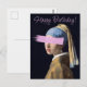 Postal Chica con pendiente de perla Feliz cumpleaños